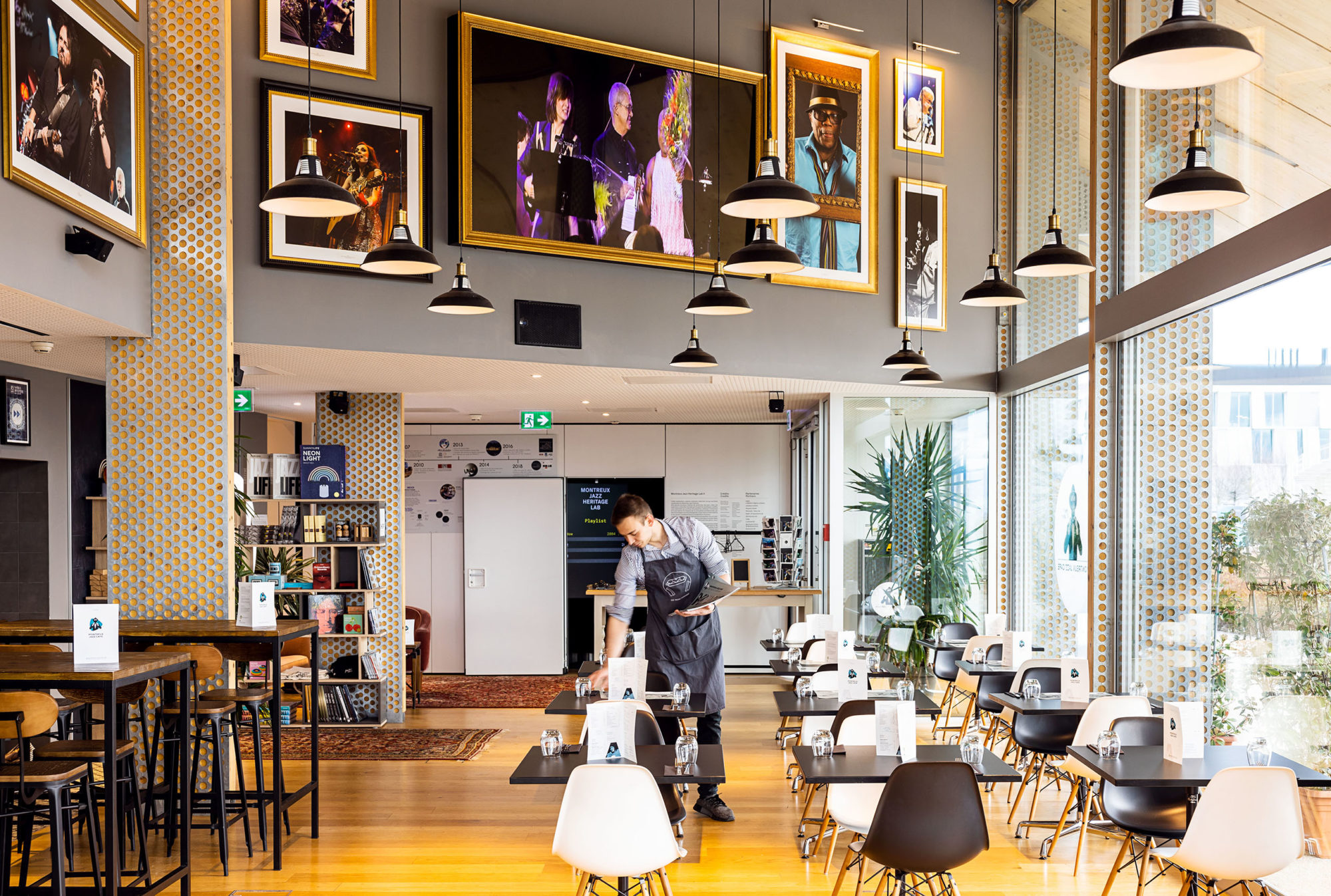 Tout au sud du bâtiment ArtLab, le Montreux Jazz Café @ EPFL est dédié à la mise en valeur des archives du célèbre Montreux Jazz Festival, inscrites au patrimoine mondial de l’Unesco.